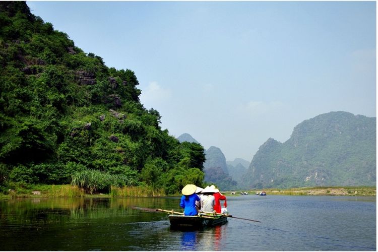 Quý khách sẽ được ngồi trên đò, di chuyển dọc theo dòng sông trong xanh, thơ mộng, thả mình vào thiên nhiên xanh ngát, với màu xanh của núi, trời, sông nước.